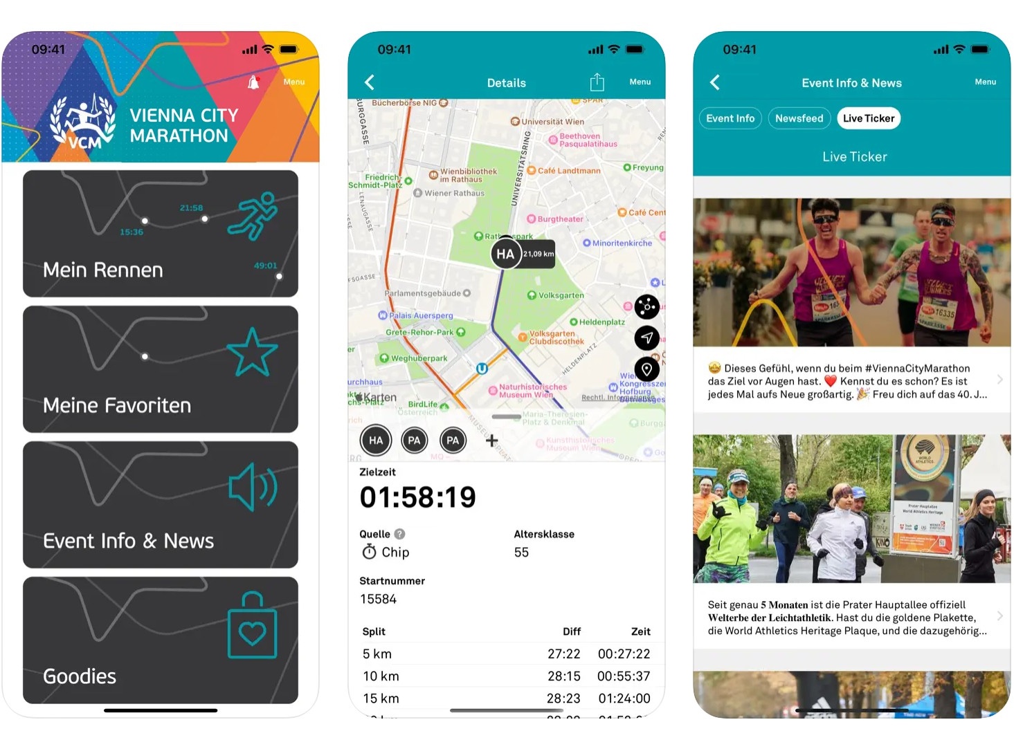Die Vienna City Marathon App bietet jede Menge Informationen vor, während und nach dem Marathon. Kurz: Für alle Läufer*innen und Fans der ideale Begleiter beim Vienna City Marathon! Die VCM App ist kostenlos verfügbar und läuft auf iOS und Android Betriebssystemen.