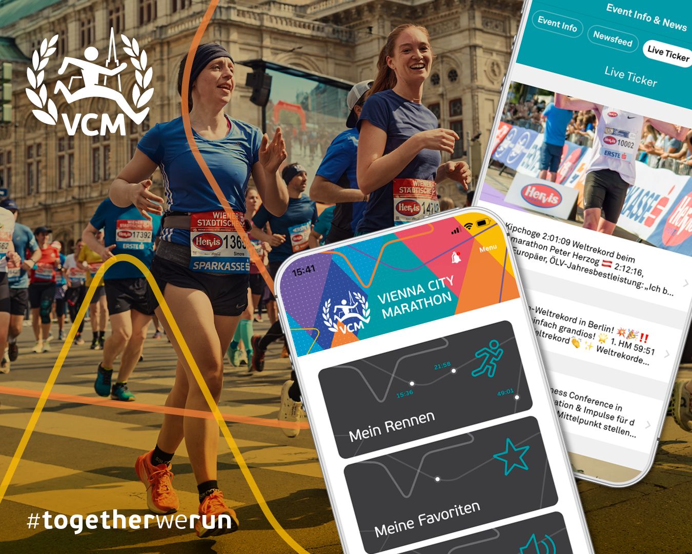 Die VCM App „Vienna City Marathon“ ist für Android und iOS Betriebssysteme verfügbar: