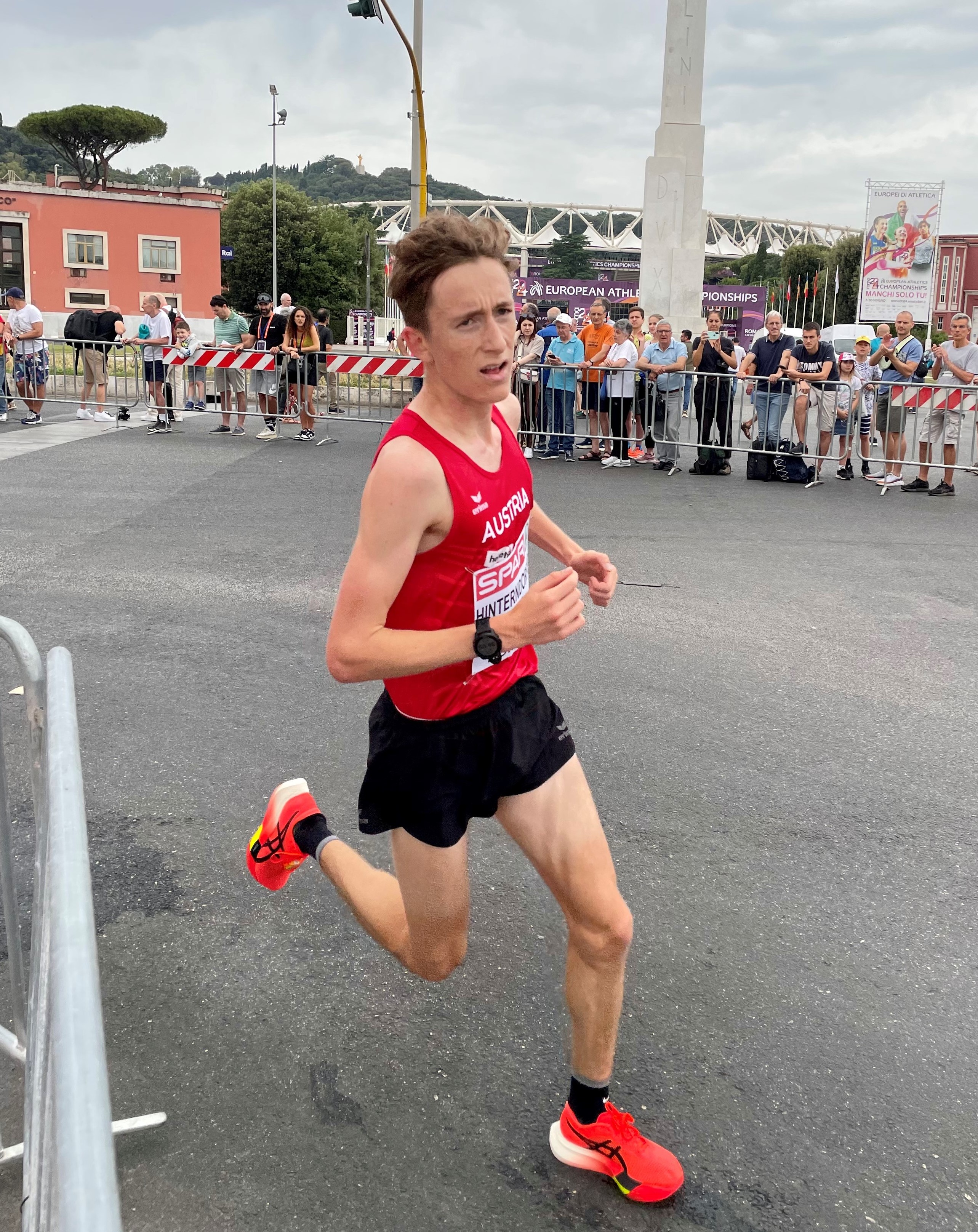 Die Rangordnung innerhalb des österreichischen Teams legte er gleich von Beginn an fest, denn er startete couragiert der anfänglich großen Spitzengruppe ins Rennen. Die ersten 5 Kilometer legte er in 14:40 Minuten zurück, die ersten 10 Kilometer in 29:49 Minuten – sein ÖLV U23-Rekord auf dieser Distanz ist nur 20 Sekunden schneller.