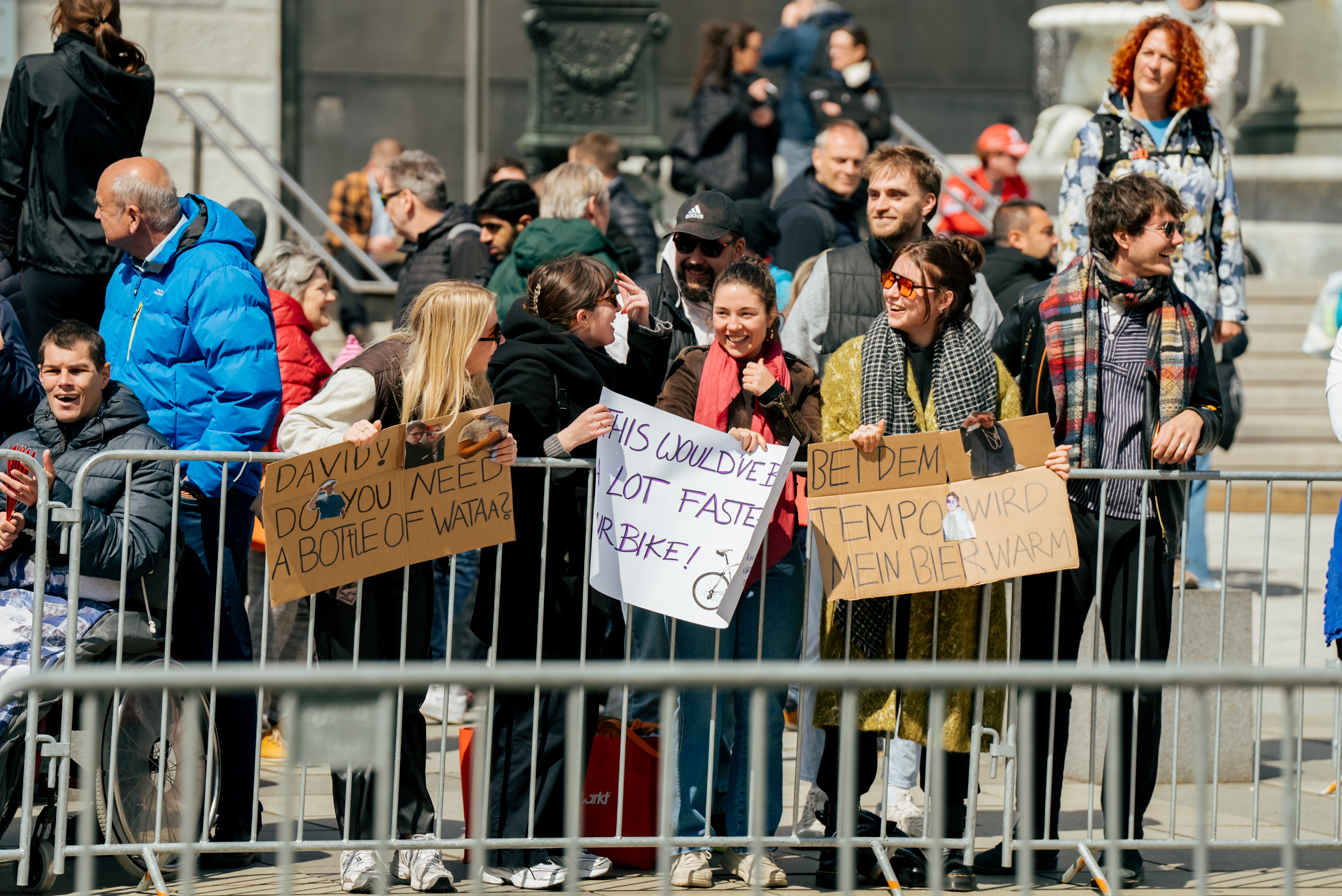 Dieses Motto wird am Sonntagfrüh mit einem Spezialprinter auf der Reichsbrücke angebracht. Dieses Motto tragen auch die offiziellen Schlussläufer*innen auf ihren Fahnen. Ihre Aufgabe ist es, die Teilnehmer*innen am Ende des Feldes zu motivieren und bis ins Ziel zu begleiten. Sicherlich davor kommt jene Staffel ins Ziel, die vom Vorstand der Erste Bank Oesterreich gebildet wird: Gerda Holzinger-Burgstaller, CEO; Max Clary und Aldringen, Privatkundenvorstand; Ilinka Kajgana, Risikovorständin; Hans Unterdorfer, Firmenkundenvorstand.