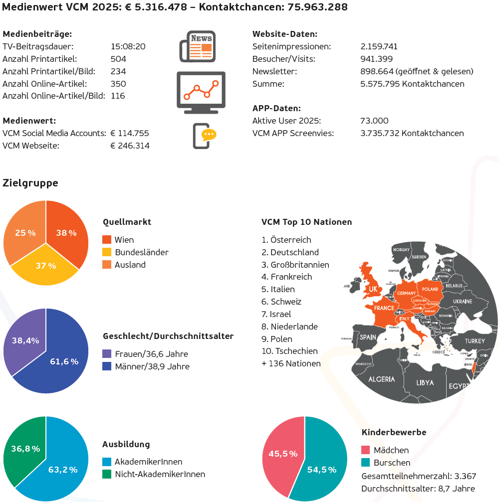 Seit dem Jahr 2001 werden durch die UNITED SYNERGIES I Medien- und Informationsagentur GmbH die VCM Medienwerte für die Veranstaltung und seine Sponsoren und Partner laufend analysiert.